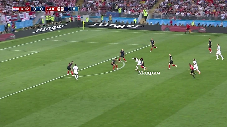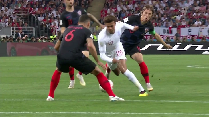 И снова Модрич проваливается в опорной зоне. На этот раз он совершил фол на Деле Алли на подступах к штрафной площади хорватов. Именно после этого стандарта, который шикарным образом исполнит Киран Триппьер, Англия поведет в счете.