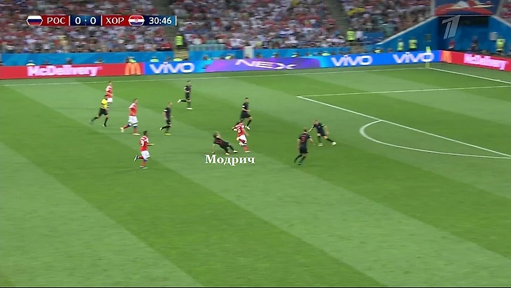 Именно Лука Модрич провалился в опорной зоне и позволил открыть счет Денису Черышеву.