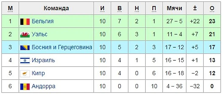 Уэльс большую часть времени лидировал в этой группе. И лишь на самом финише отбора уступил первенство сборной Бельгии. Бэйл и Ко оставила позади себя такие сильные команды, как Израиль и Босния.