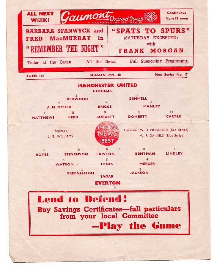 А главное — по крайней мере для этого текста — появилась система «гостевых игроков». Команды могли приглашать игроков из других клубов для замены тех, кто не мог играть в матче (призванных в армию и работающих на стратегически важных предприятиях). Так получилось, что в матче против Эвертона Манчестеру не хватало 5 игроков — позвали Мэттьюза (правда, тогда ещё не «сэра»), пару игроков из Сити и даже Мэтта Басби (тем, кто не знает, до того как возглавить Юнайтед в 1945 он играл за Сити и Ливерпуль), но последний приехать не смог. В предматчевой программе писали: «Футбол военного времени привел прямо-таки невероятным событиям! Мэттьюз, конечно, это звезда сам по себе. Величайший правый вингер со времен Билли Мередита».