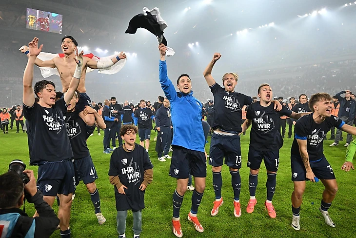 Драматическая серия пенальти завершилась всего десять минут назад, а футболисты уже были в синих футболках с надписью «Ihr & wir in Jahr 4» («Вы и мы четвертый год»), что символизировало их третий подряд сезон в Бундеслиге, когда команда спаслась от вылета. Это вызвало определенные вопросы: кто вообще мог додуматься напечатать такие футболки после разгромного поражения в первом матче? Ответ прост: футболки были готовы еще до конца сезона, когда «Бохуму» для сохранения места хватало ничьей против «Байера» (0:5) и «Вердера» (1:4). Менеджер по экипировке «Бохума», Андреас Паль, не сдал футболки в утиль после поражения в первом матче, а взял их на ответный матч — на всякий случай. И не ошибся. Один из немногих он все еще верил в команду. А ведь коэффициент на «Бохум» был аж 22.