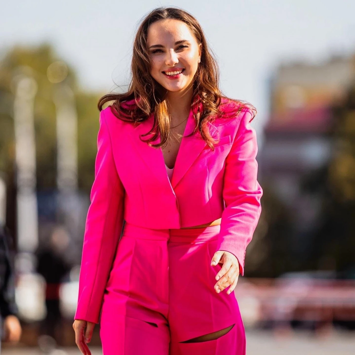 − Одеваюсь под настроение. В гардеробе самый яркий именно этот розовый костюм. Я в том матче, кстати, хет-трик и сделала. После игры все стали в шутку говорить, что в этом костюме я буду ходить на все матчи. Обычно я выбираю более спокойные тона в одежде.