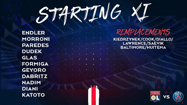 Жан-Люк Вассер сделал одно изменение в составе "Лиона" по сравнению с матчем последнего тура чемпионата. На левый фланг обороны вместо Жанис Кайман вышла Алекс Гринвуд. Обе футболистки пришли в команду летом и конкурируют за эту позицию.