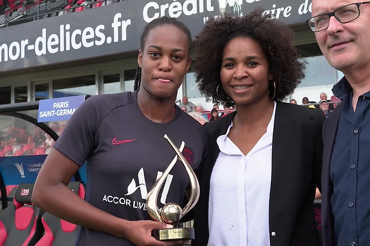 Перед стартовым свистком генеральный секретарь Французской футбольной федерации Люра Жорж и директор по коммуникациям компании "Аркема" (титульного спонсора чемпионата Франции) Жиль Галинье вручили приз лучшему бомбардиру прошлого сезона. Нападающая ПСЖ Мари-Антуанет Катото в 20 играх чемпионата наколотила 22 мяча.