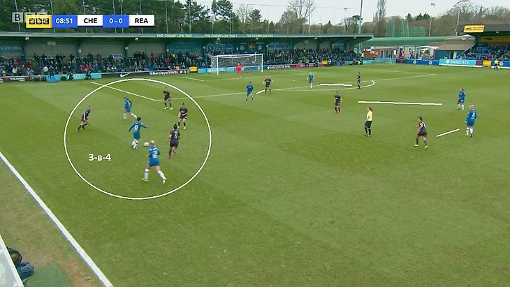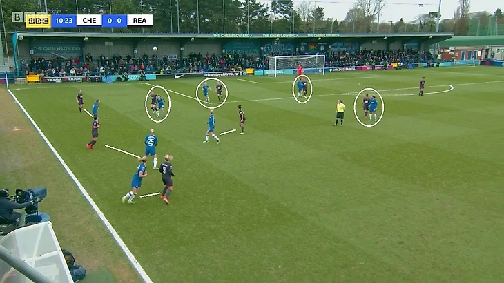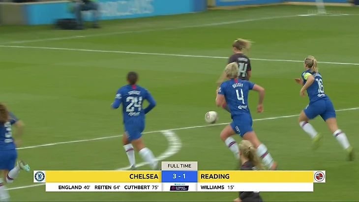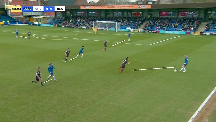 На последние полчаса Эмма Хейз поменяла схему лондонцев. Софи Ингл, игравшая в опорной зоне, была заменена на Эрин Катберт, которая явно более нацелена на атаку. Теперь против двух центральных защитников "Рединга" действовали три нападающих "Челси":