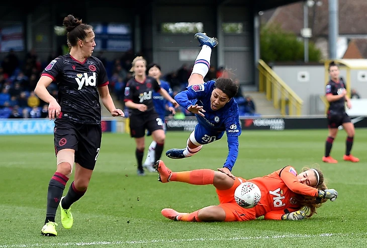 Казалось бы, идеальный сценарий для "Рединга", но всё пошло не так. Уже после розыгрыша мяча с центра и очередного навеса в сторону Сэм Керр не скоординировали свои действия вратарь и защитница, Поттер не стала накрывать Керр, а Молони вышла из штрафной и сбила нападающую "Челси", за что и была удостоена красной карточки.