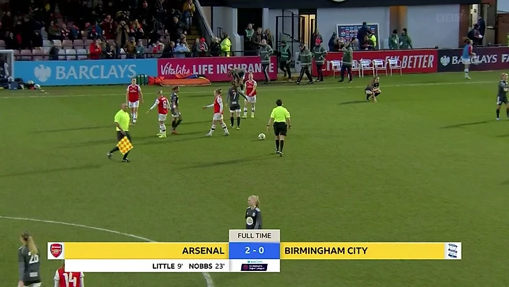 По похожему сценарию лондонцы забили третий гол. Сначала сэйв вратаря, а затем добивание. Итоговый счёт матча зафиксировала Эрин Катберт: