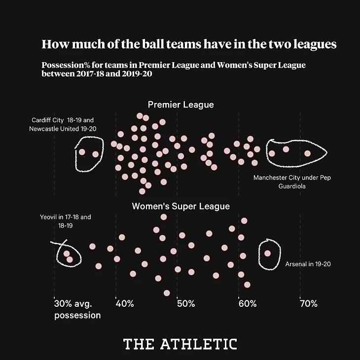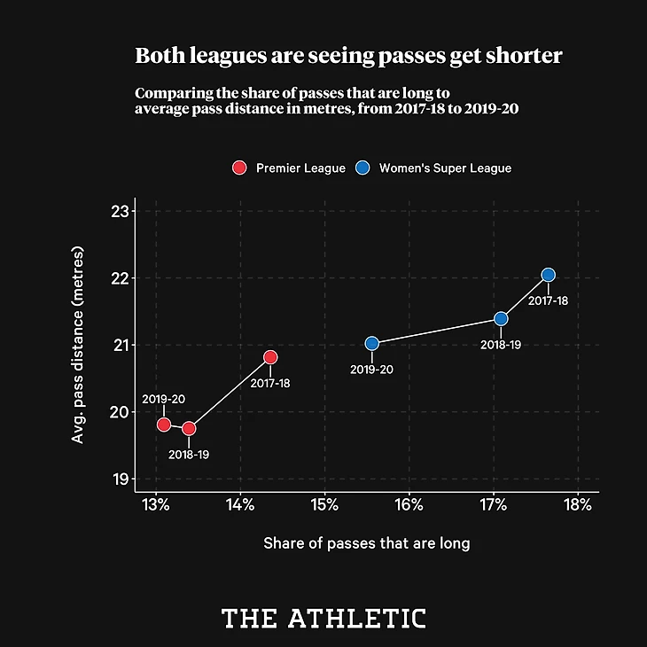The Athletic провёл анализ данных трёх последних сезонов АПЛ и Суперлиги (высший женский дивизион Англии), чтобы выявить сходства и отличия.