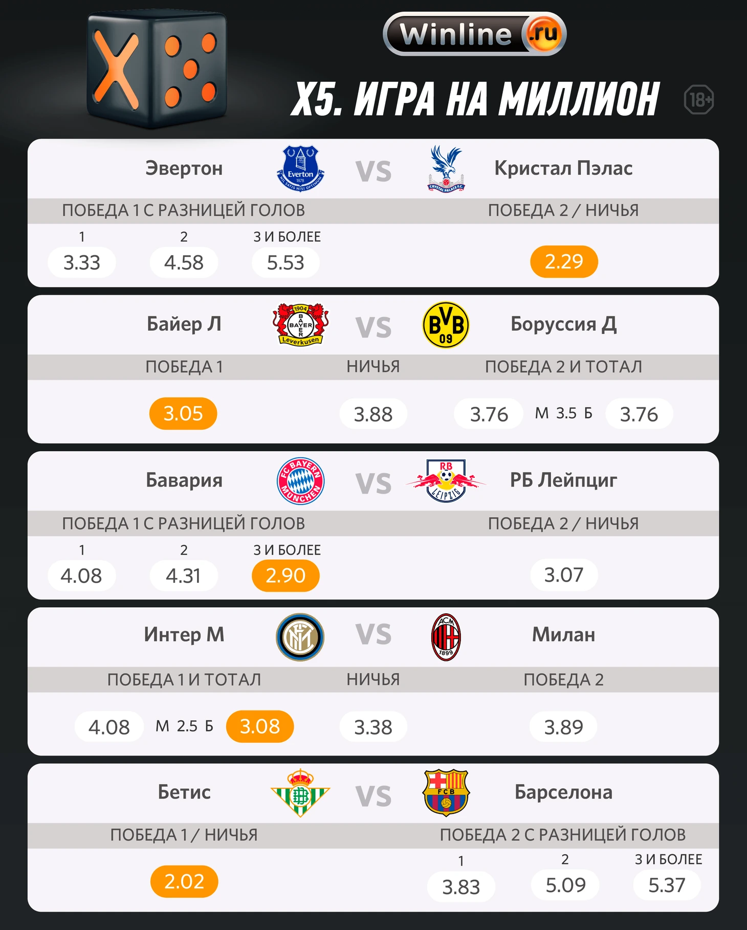 Вы в блоге «X5 – игра на миллион», который мы ведем вместе с букмекерской компанией Winline. Еженедельно один из наших авторов делает пять прогнозов на европейские топ-матчи. Вы тоже можете их сделать (бесплатно!) в приложении Winline – и если отгадаете все пять, получите миллион рублей.