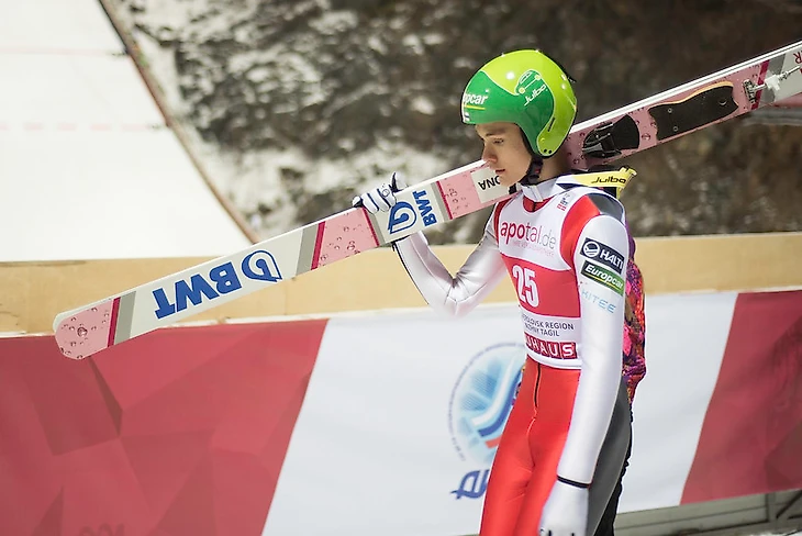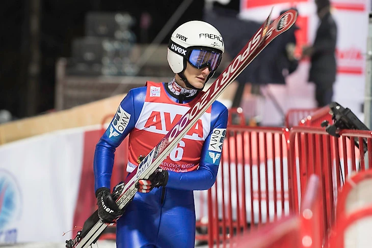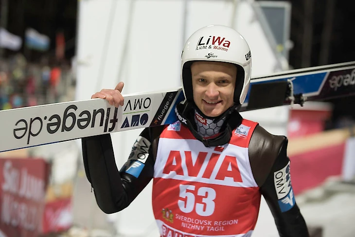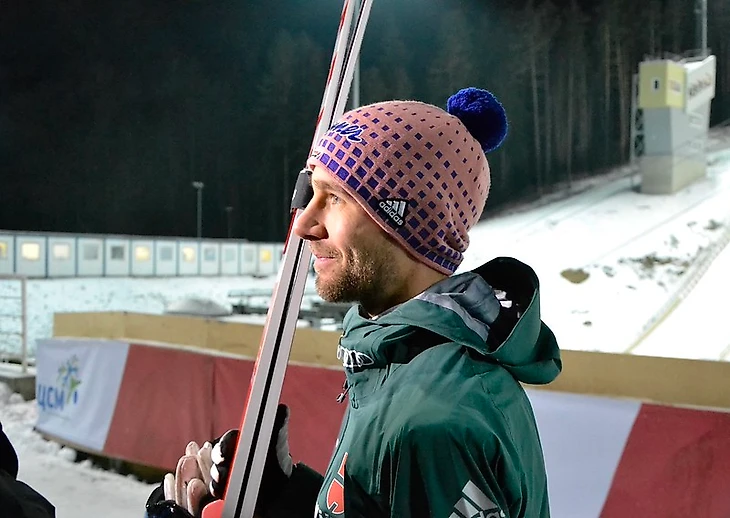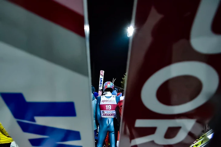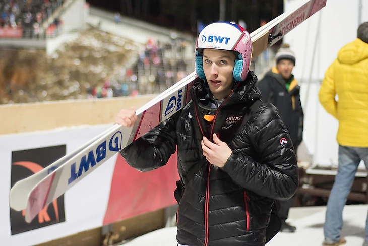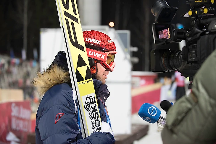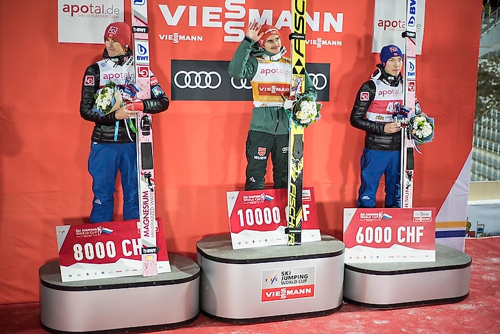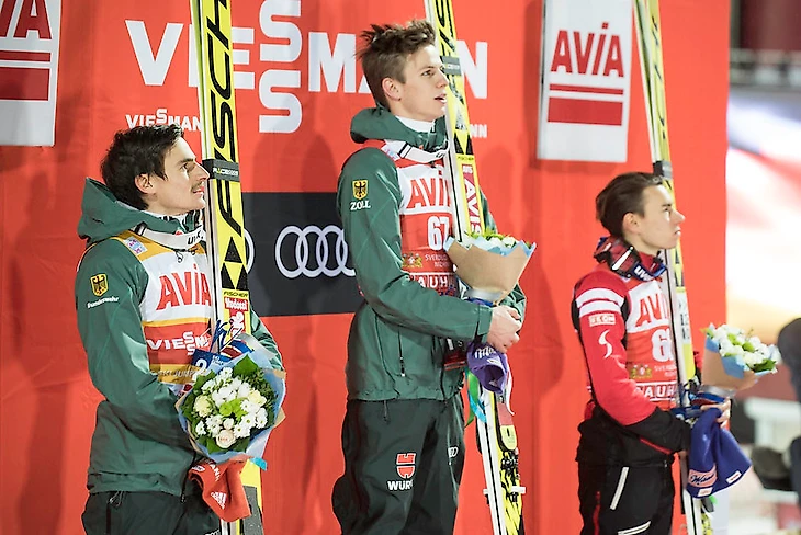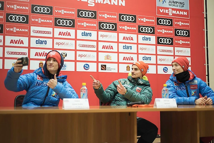 Даниэль-Андре Танде, Рихард Фрайтаг и Йоханн Андре Форфанг на пресс-конференции после субботнего соревнования