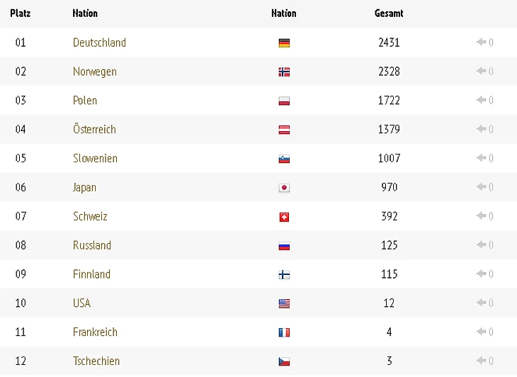 — Всё ещё в сонном царстве пребывает сборная Австрии. Традиционно медленное начало сезона австрийцев под Куттином показывает себя в полной красе и в этот раз. За последние несколько этапов лишь усилиями одного Крафта австрийцы попадают хотя бы в топ-15, да и сам лидер прошлого сезона чувствует себя неуверенно, скорее стремясь к местам в районе десятки, а не на подиум (как, однако, вышло в один из дней в Энгельберге). Впрочем, планка ожиданий из года в год сползает всё ниже. Бывший тренер сборной Александер Пойнтнер в очередной раз призывает в одной из своих колонок для Tiroler Tageszeitung снять уже наконец розовые очки.