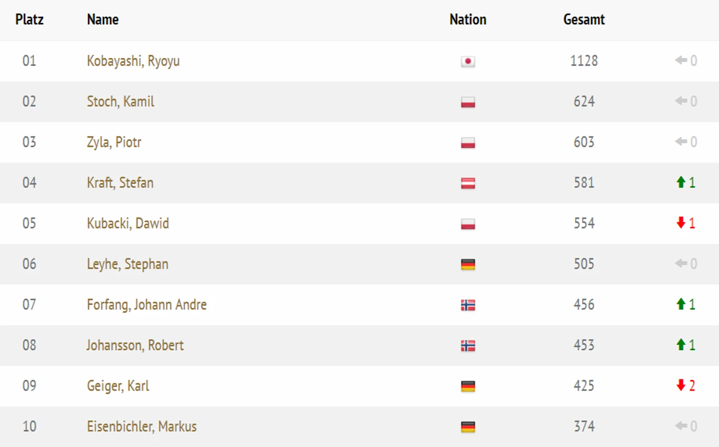 — Помните, кстати, о магии цифры 7 для Рюёю Кобаяши? Снова седьмое место, поделённое на этот раз аж с двумя другими летающими лыжниками, Тими Зайцем и Штефаном Ляйе. У японца чувствуется небольшой спад после триумфального турне – впрочем, точно так же это может быть и режим экономии сил перед неумолимо приближающимся чемпионатом мира.