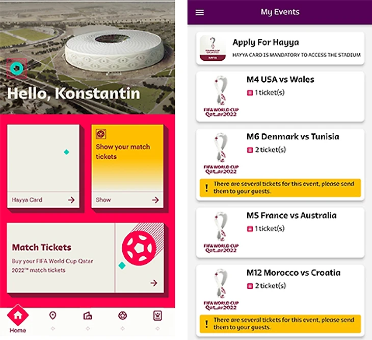 Теперь подробнее о местном Fan ID: оформляется онлайн и в адекватные сроки: с того момента, как мы скачали приложение и до того, как нашу заявку одобрили, прошло чуть меньше трех дней. В целом, все свелось к заполнению довольно нудных и монотонных анкет, загрузке фотографии и брони жилья. После оформления карты в приложении все стало очень удобно: на одной странице информация о болельщике, месте проживания и его билетах.