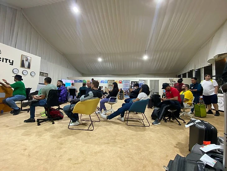 Нас привезли в большую палатку, там мы увидели очередь на заселение. 4 часа ночи, очередь очень большая, а двигалась очень медленно. Было ощущение, что нас специально долго держат в очереди, потому что еще достраивают деревню.