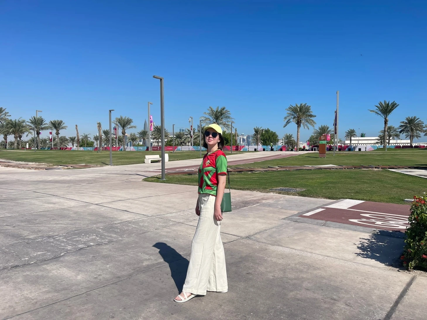 По пути к нам подошел марокканец, который очень хотел общения: сначала расспросил Марину про футболку и уточнил, где мы ее взяли (все еще позаимствовали у друга, который интересуется африканским футболом), а потом начал вспоминать «потрясающий чемпионат мира в России». В целом, у всех иностранцев одна и та же тональность: в России был лучший турнир, в Катаре сейчас не так.