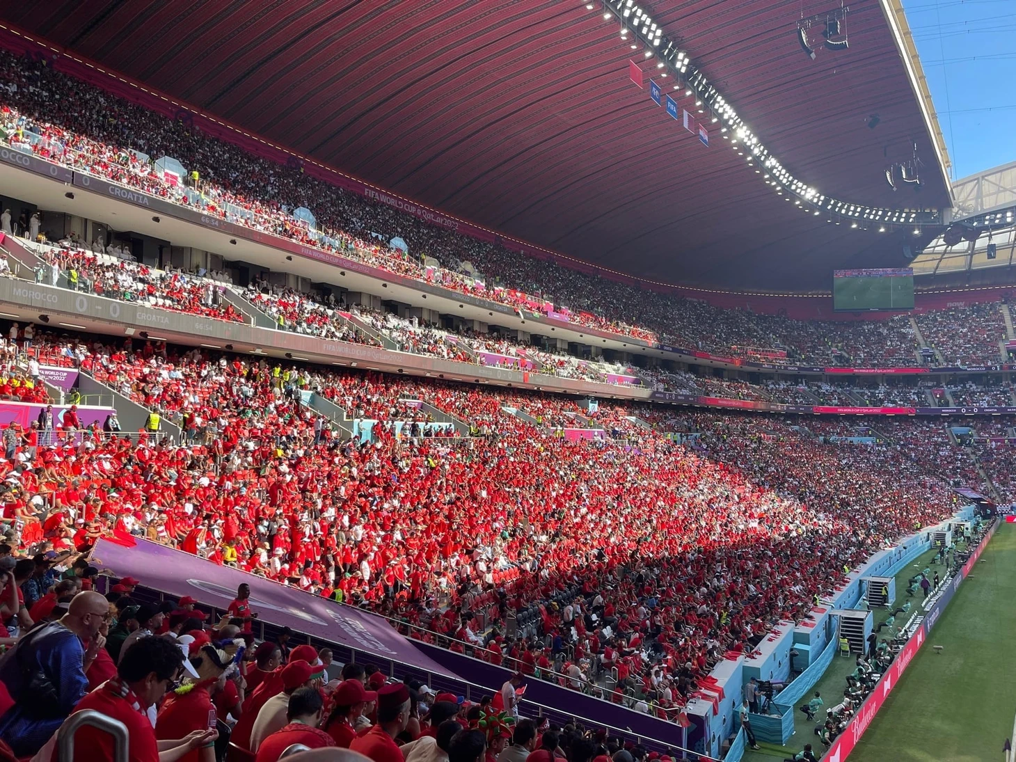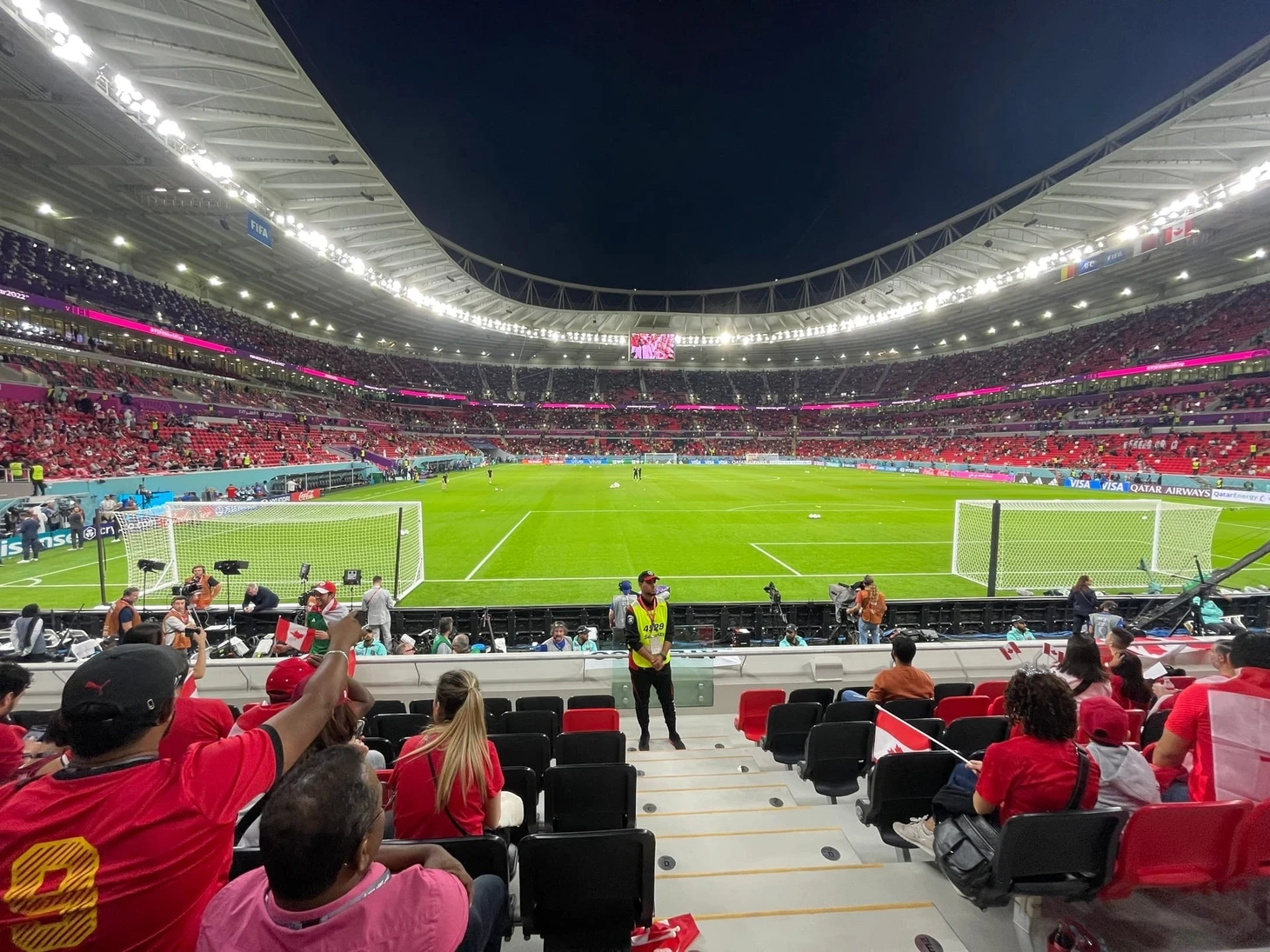 На четвертый день турнира нам наконец-то выпал матч из первого слота: в 13:00 на стадионе «Аль-Байт» играли Хорватия и Марокко. Основная сложность заключалась в том, что добираться до этого стадиона очень (очень-очень) долго, поэтому и вставать пришлось в 9 утра. Учитывая все проблемы с очередями вечернего матча накануне (рассказывали в прошлый раз), поспать почти не получилось. Тем не менее, мы были очень заряжены на посещение нового стадиона и еще одного матча, где Марина сможет надеть футболку одной из сборных.