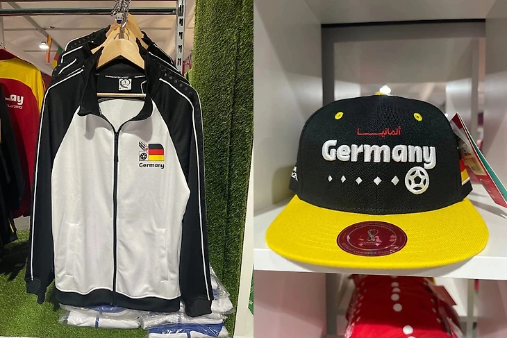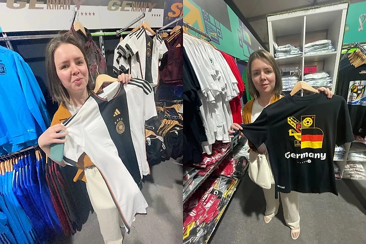 Для наших друзей, которые болеют за сборную Германии, мы отфотографировали все варианты мерча. Поэтому на примере Германии покажем некоторые позиции:
