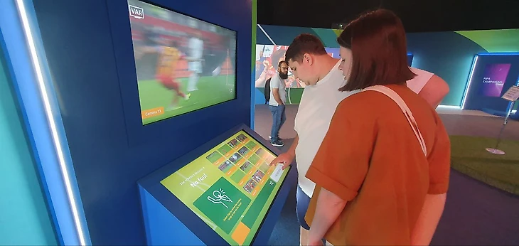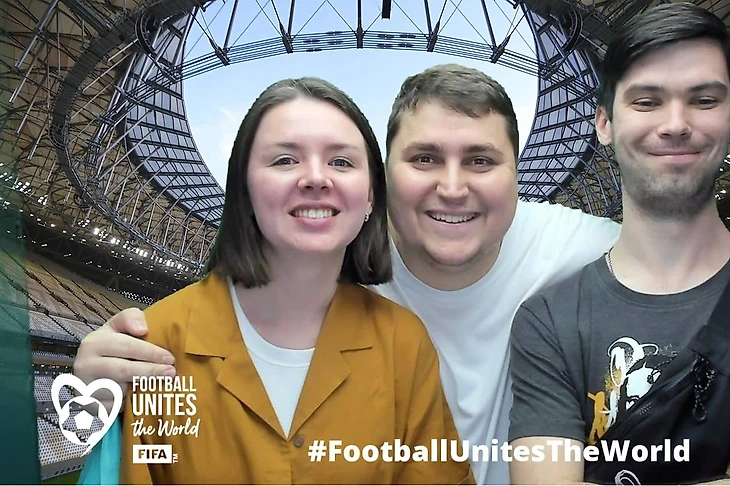 Зашли в некоторые интерактивные залы, где можно было сфоткаться на фоне любого стадиона ЧМ.