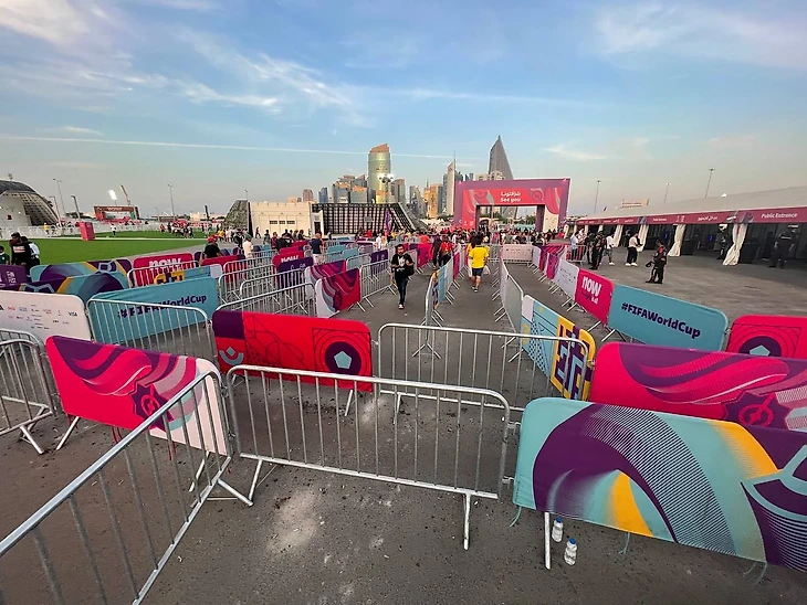 Тут все по классике: мы прошли семь кругов ада (в Катаре во время чемпионата мира их называют змейки из заборов), потратив на это лишние полчаса.