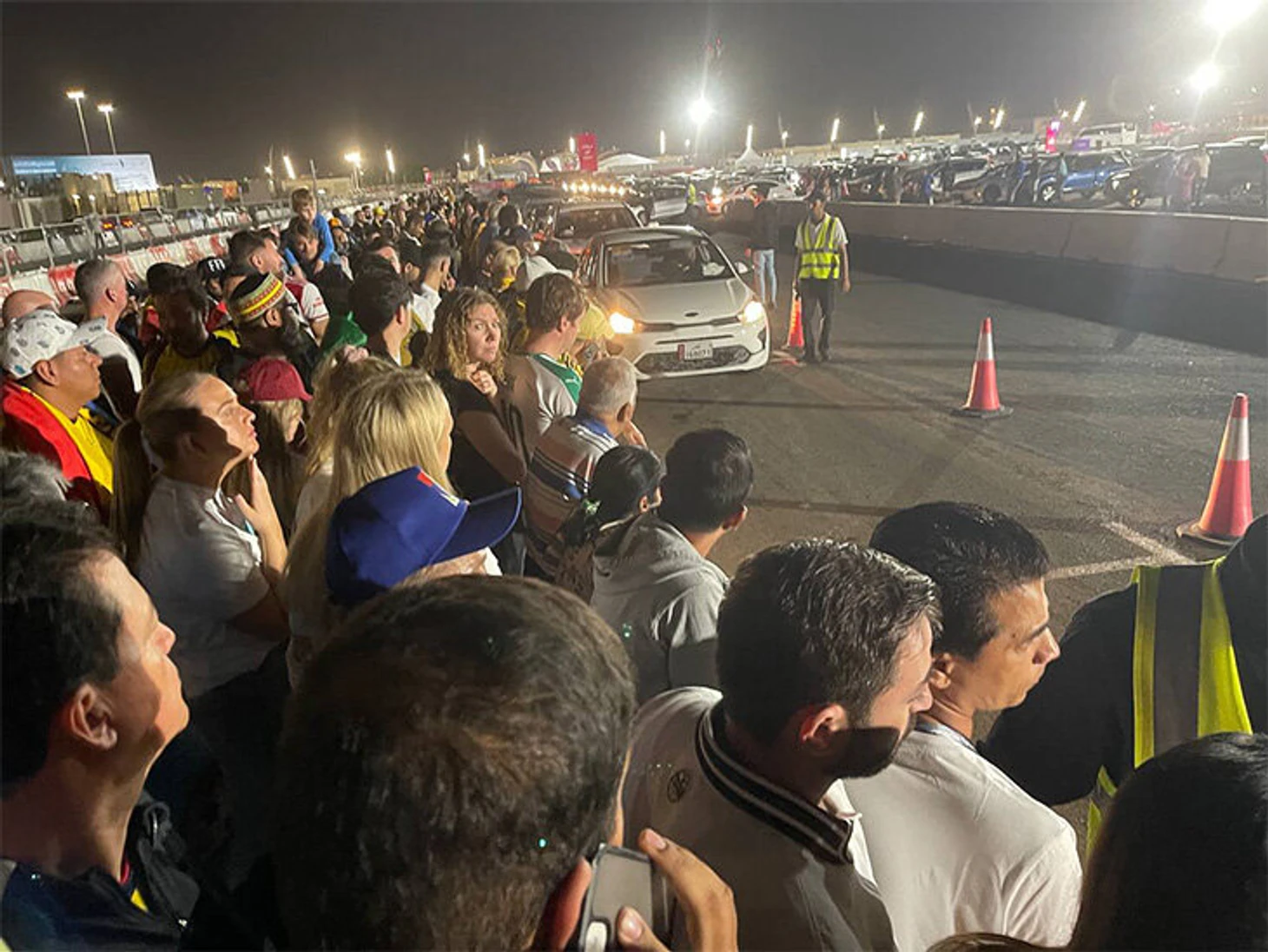 Через 20 минут мы были на месте, вызвали убер и стояли в очень плотной толпе таких же болельщиков. Конечно, толпа была огорожена железными заборами. Без них в Катаре никуда.