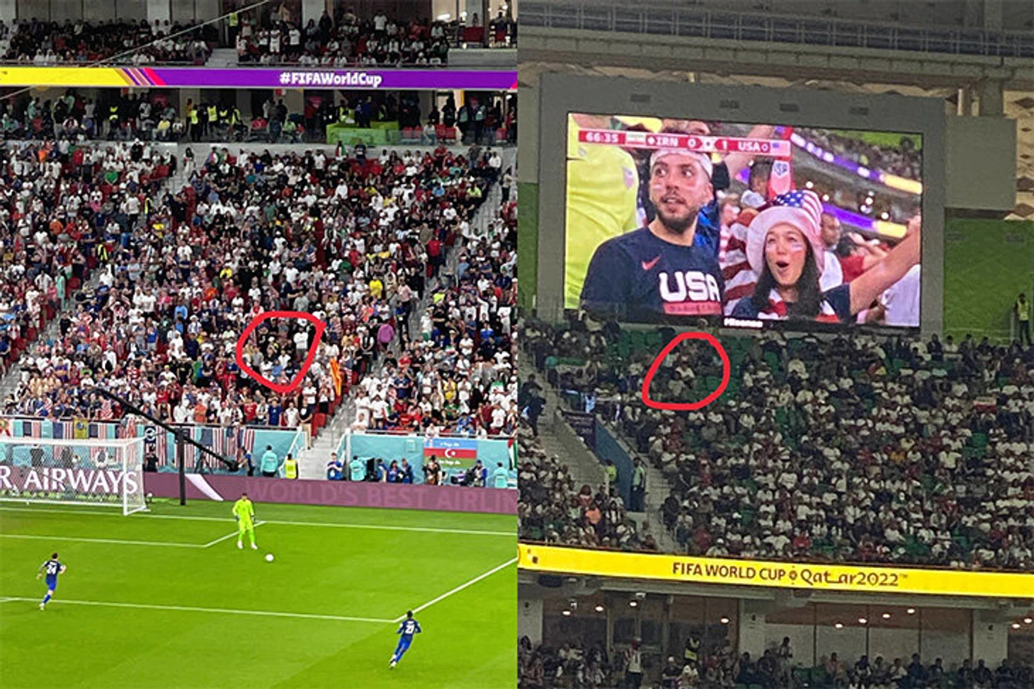 Так получилось, что мы с Мариной сидели на разных сторонах: она была на фанатке американцев, а я заряжал «Иран» вокруг иранцев.