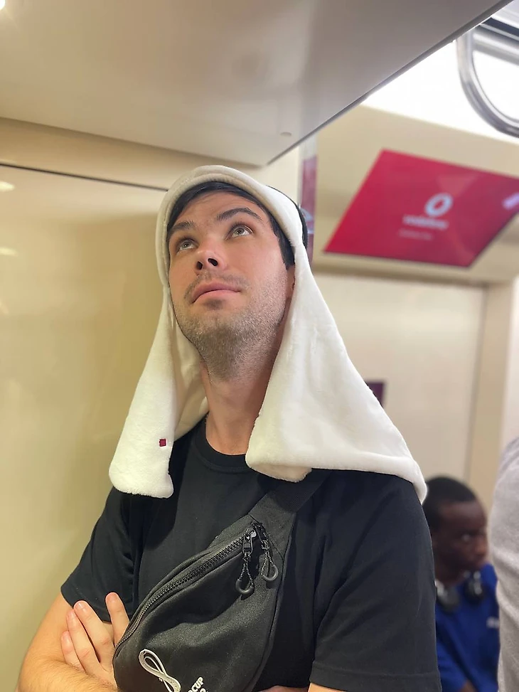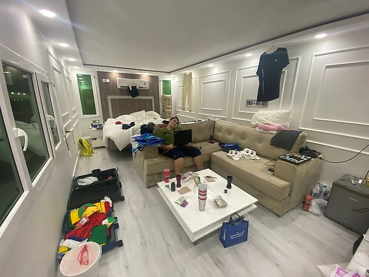 Наш последний полный день в вагончике мы начали очень расслабленно: поздно проснулись, запустили розыгрыш шарфика в нашем телеграме, посмотрели фильм Вити Кравченко про Катар, выпустили свой ролик про главный фан-шоп ЧМ.