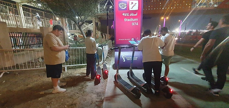 Наша последняя игра в группе проходила на стадионе 974. Так получилось, что до этого дня мы никогда там не были. Мы решили поехать на стадион на такси, это решение казалось очень удачным, учитывая близость стадиона и цену (всего 400 рублей). По факту все-таки ошибочным – парковка стадиона была настолько далеко, что от метро идти было ближе. Тут нам на помощь пришли самокаты, на которых мы проехали большую часть пути.