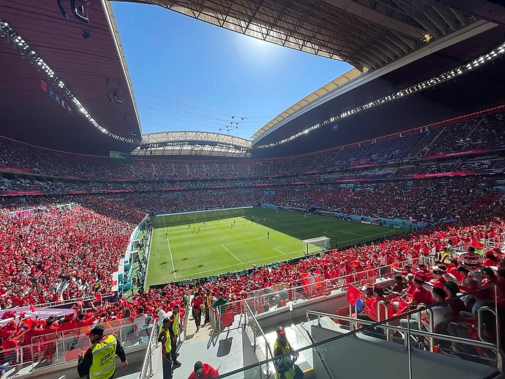 Постфактум легко об этом говорить, но по ходу матча марокканцам очень не хватило поддержки. Да, 90 процентов болельщиков болели за африканцев, но делали это очень пассивно. Скорее всего, к концу турнира реальных марокканцев осталось очень мало. Это было очень заметно во время гимна Марокко: в красно-зеленой атрибутике был весь стадион, но никто вокруг нас не пел.