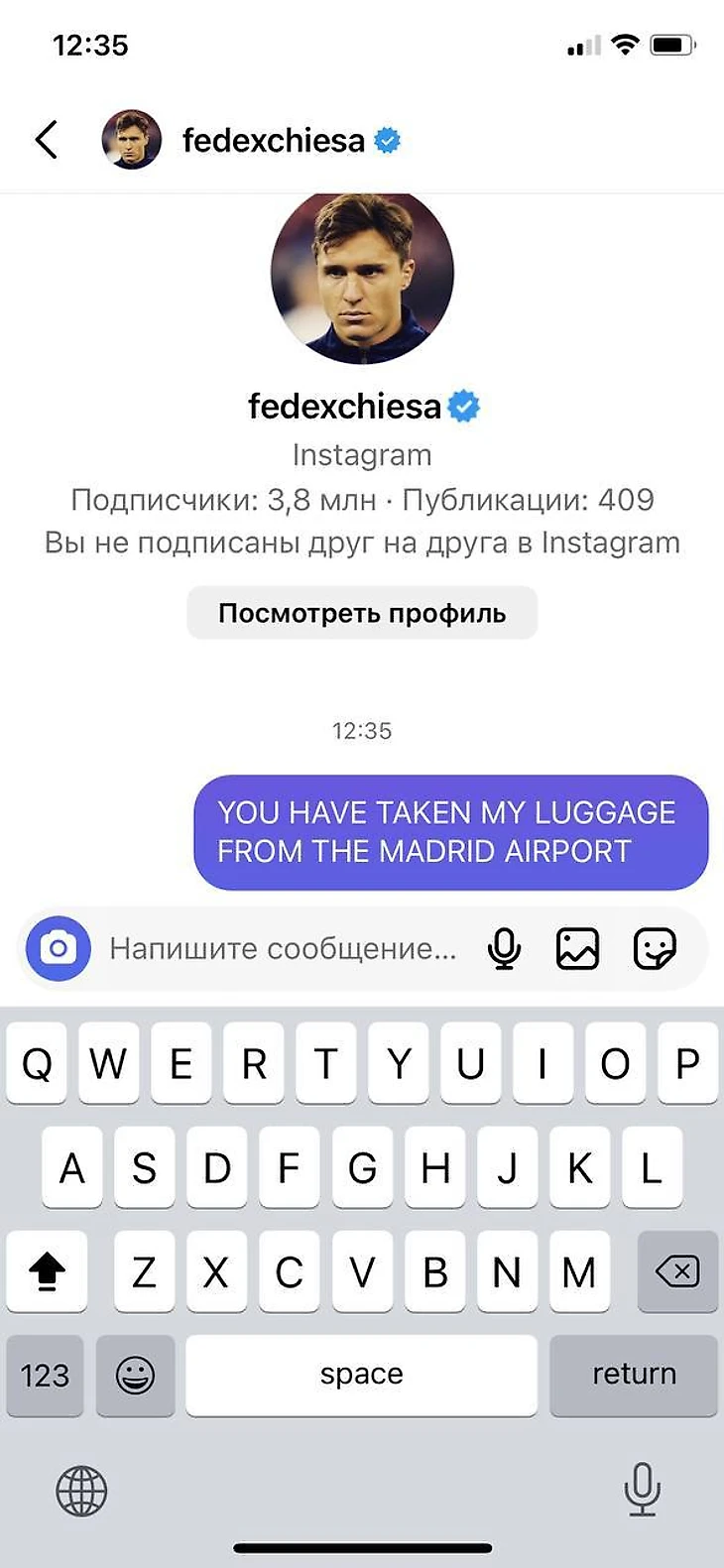 На нем была не наша бирка, а еще чемодан был подписан – Федерико Кьеза.