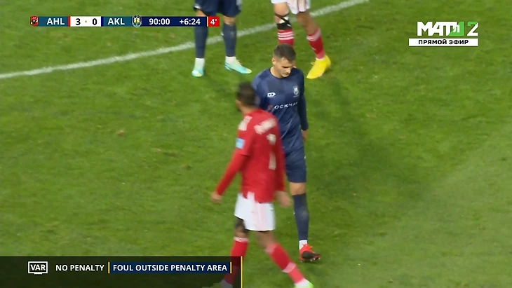 После просмотра судья вернулся на поле и в микрофон на весь стадион объявил решение: фол до штрафной, при этом подкат защитника – это явное лишение возможности забить. Пенальти отменяется, Митчеллу – красная карточка.