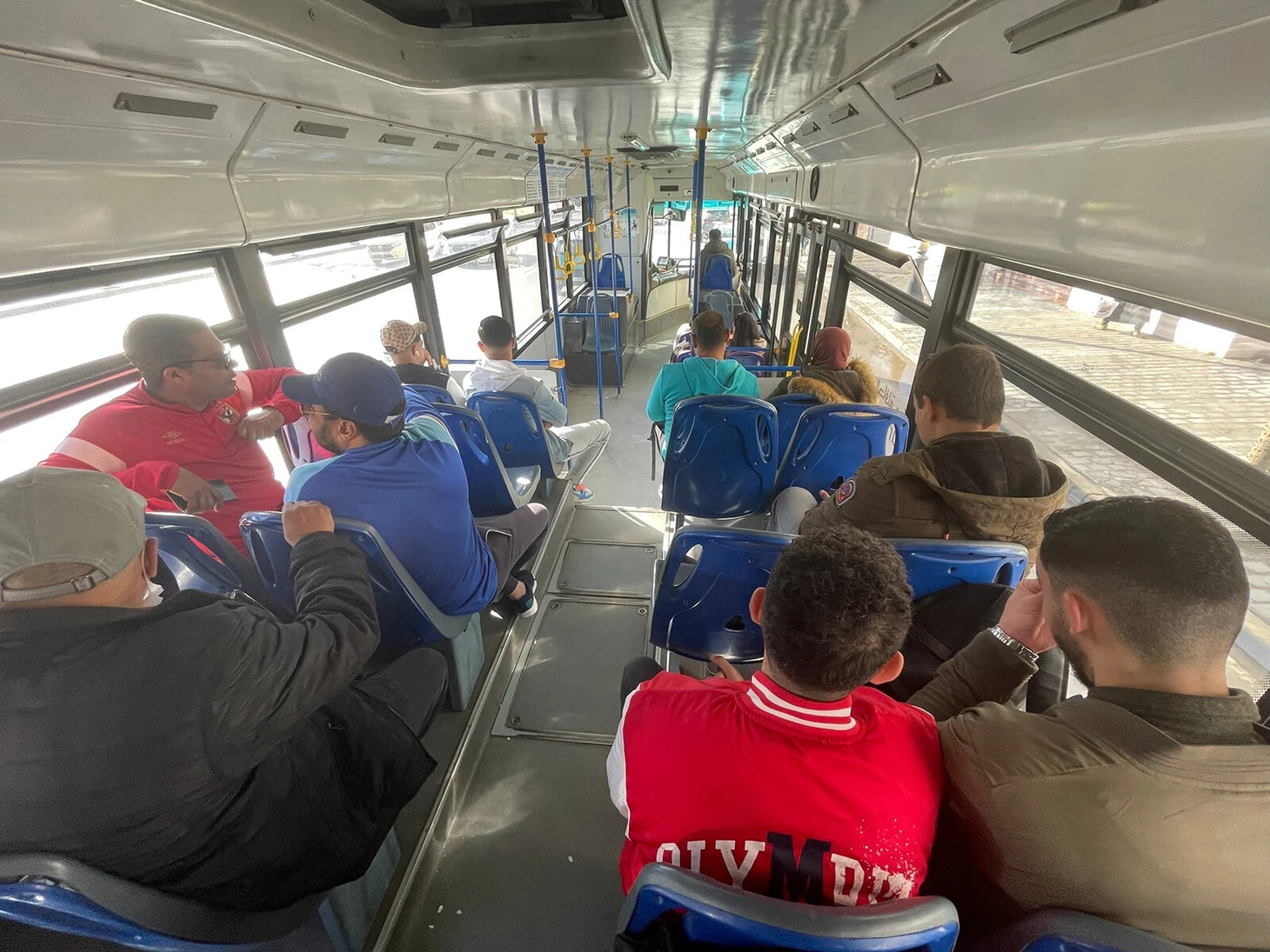 После неприятного опыта на матче открытия мы поехали на стадион заранее: за 2,5 часа уже сидели в автобусе до арены.