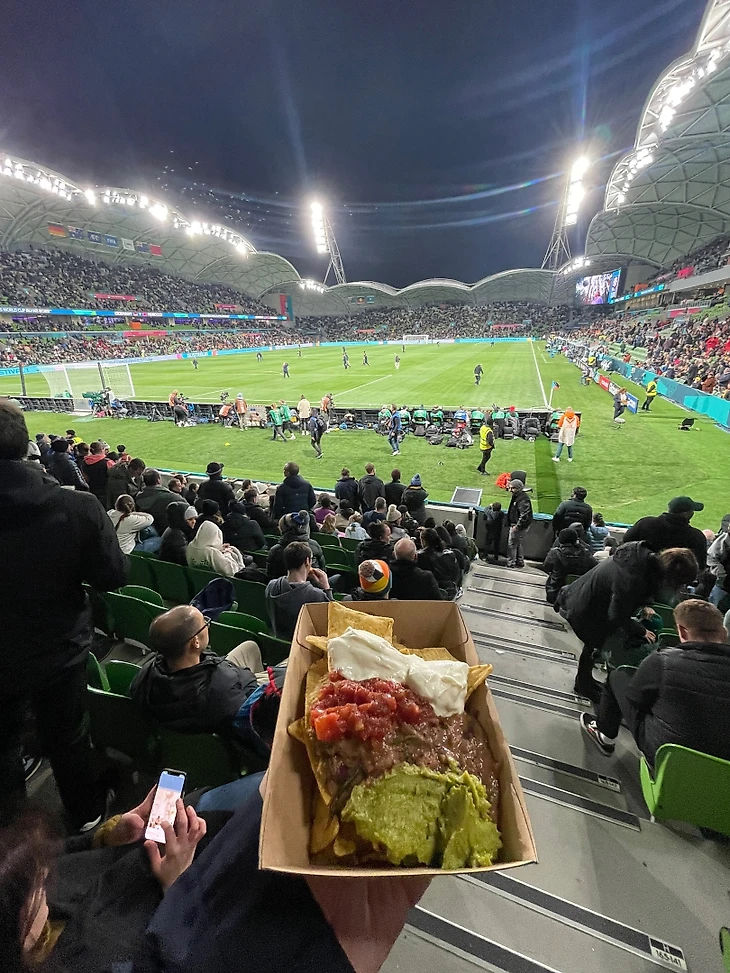 На свой второй матч мы решили выбрать места второй категории за 30 австралийских долларов (примерно 1800 рублей). Но так и не поняли, чем они отличаются от третьей: мы все еще сидели за воротами, но чуть повыше.