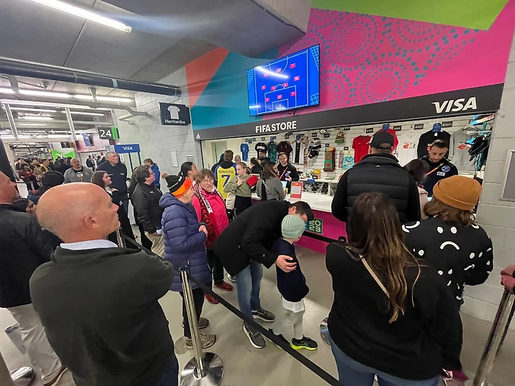 Абсолютно такая же ситуация и в фан-шопе перед игрой: очередь из 20 человек нейтрализуется за пять минут.