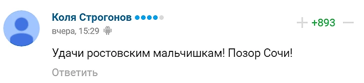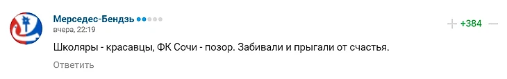 Довольно много претензий заключалось в том, что игроки "Сочи" слишком много забили. То есть, надо было игрокам забить 3, 4, ну максимум 5 голов. Я не шучу, такие комментарии были далеко не редкими: