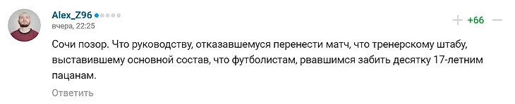 Вчерашний матч мало кого оставил равнодушным, и, разумеется, в топе новостей были комментарии, яро осуждающие все, что связано с "Сочи".