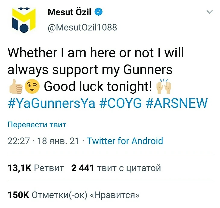 В общем, давайте забудем все обиды? Озил действительно был одним из лучших плеймейкеров за всю историю. Мы должны гордиться тем, что такой талантливый футболист мирового уровня выступал за наш клуб. Мы будем скучать, Месут! 💖