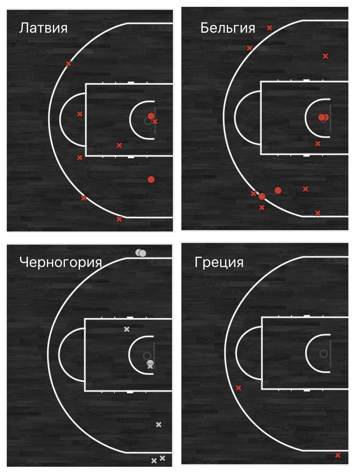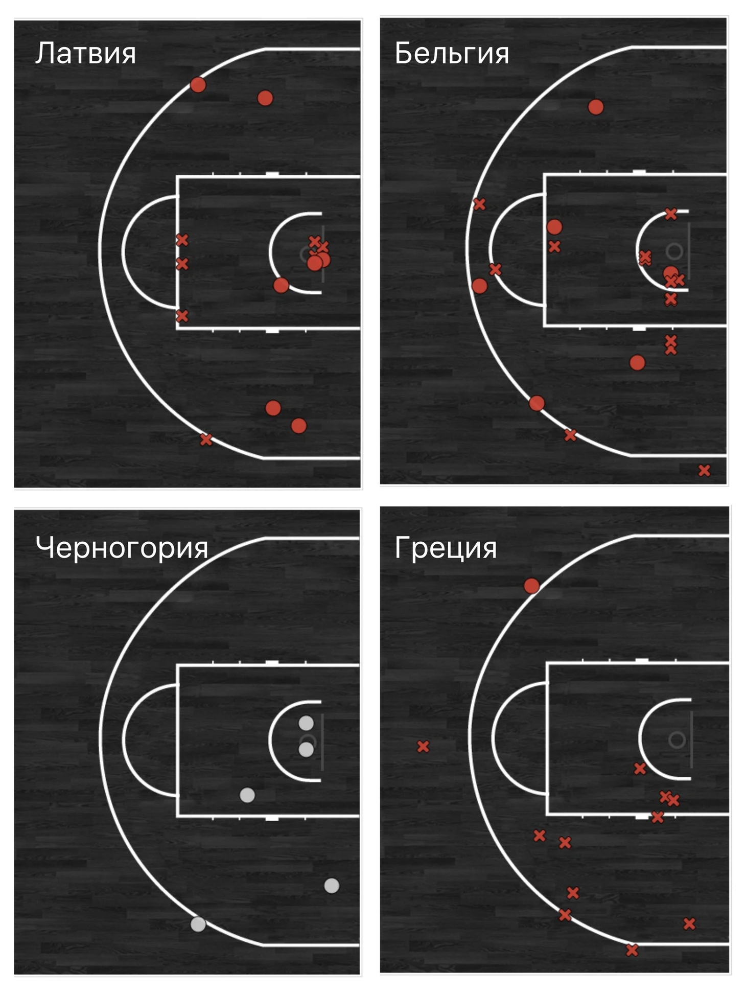 Если не брать провальную с точки зрения % попадания игру с Грецией (ее действия там я разберу отдельно), то на групповом этапе выбор бросков и реализация были на довольно приличном уровне: