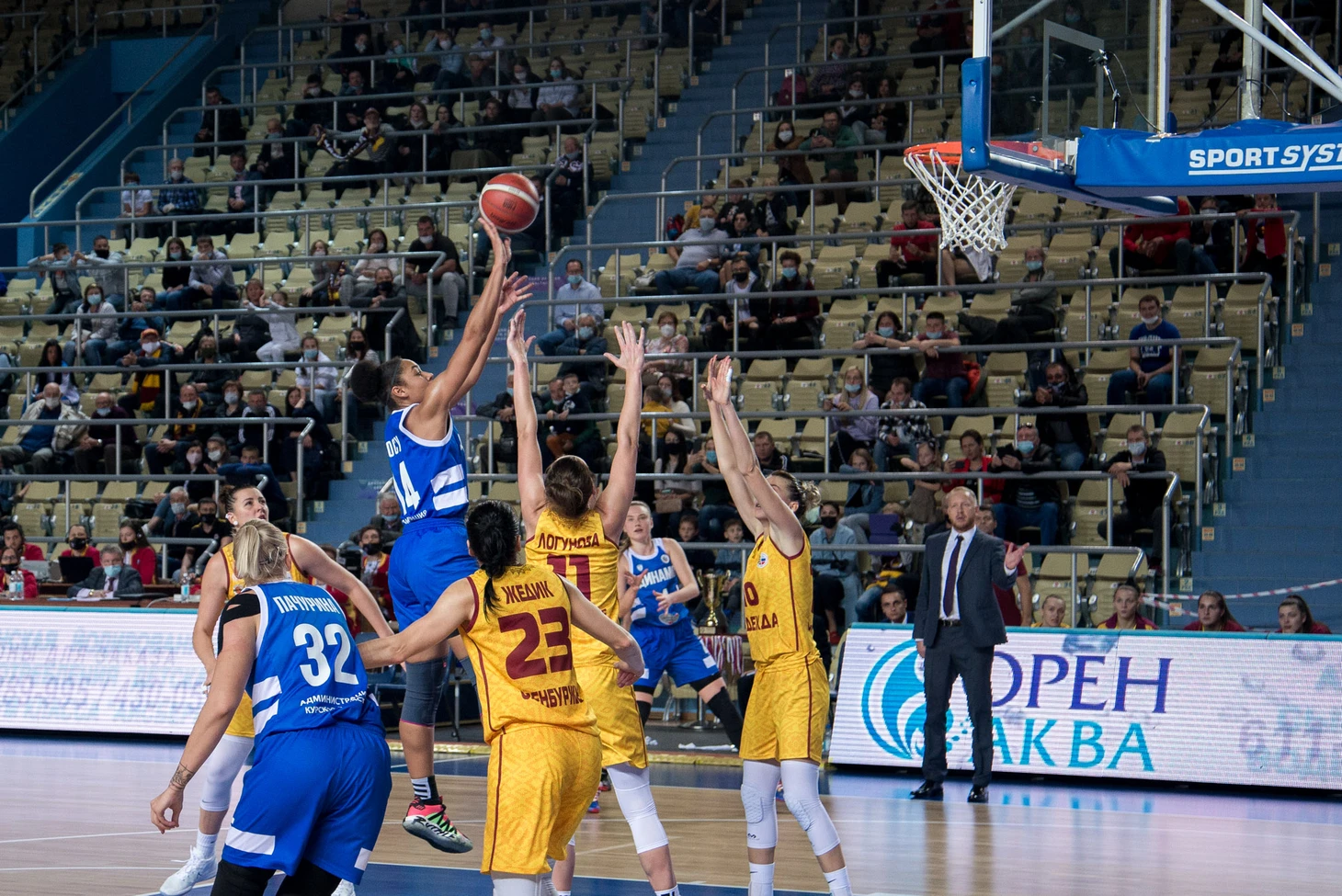 Надежная игра Анастасии Логуновой и Ксении Тихоненко в «краске» позволила желто-бордовым заработать более чем двукратное преимущество в счете уже к началу второй десятиминутки. Фронткорт хозяек максимально затруднил бело-голубым возможности для атак из трехсекундной зоны, с бросками же со средней и дальней дистанций в этот вечер у «Динамо» случилась настоящая беда.