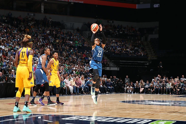 Стартовая пятёрка «Миннесоты»: Майя Мур, Ребекка Брансон, Сильвия Фаулз, Симон Огастус, Линсди Уэйлен.