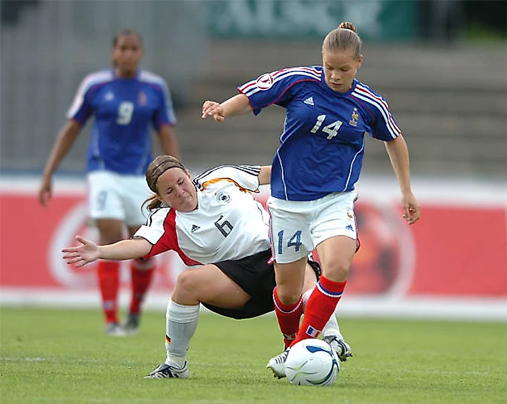 Еще две звездочки на этом турнире засияли с новой силой. Англичанка Тони Дагган не вышла со сборной из группы, но 3 из 4 командных голов - именно на ее счету. Француженка Эжени Ле Соммер (на фото) отличилась голом (а здесь двумя) на ЕВРО до 19 лет третий год подряд. В дальнейшем из Эжени выросла восьмикратная чемпионка Франции и пятикратная победительница Лиги Чемпионов. Минувшей весной на товарищеском турнире Ле Соммер забивала двум сильнейшим сборным планеты - национальным командам США и Германии. Всего за взрослую сборную на счету Эжени - 152 матча и 67 голов.