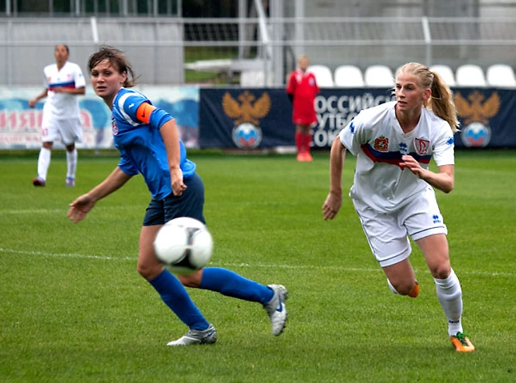 Одной из самых активных в нашей сборной была 18-летняя Анна Чоловяга (на фото ниже). Ее по праву можно считать самым ценным игроком отечественной команде не только на самом турнире, но и в предшествовавшей этому квалификации. Во втором отборочном раунде на счету Анны - два мяча из трех общекомандных, на самом ЕВРО - два из четырех. Как и Головин, Чоловяга родилась в глубинке - не в Сибири конечно, но 16-тысячный Ковдор в Мурманской области не выглядит в этом плане предпочтительнее. Тем не менее, Анна не затерялась и на взрослом уровне. С подмосковной "Россиянкой" она выиграла 3 чемпионских титула, доходила до четвертьфинала Лиги Чемпионов, а в форме взрослой сборной страны провела 56 поединков. Достойный показатель.