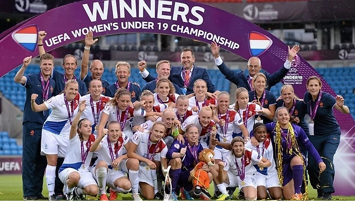 Однако, возможно, еще талантливее на данный момент выглядит голландка Жоэлль Смитс (#9). Она на целый год моложе, но нисколько не уступает в результативности. В матче с англичанками она отметилась голом, против Испании - гол+пас. Но и до этого, в отборочных раундах, результативностью она вполне напоминала Вивиан Мидема. В квалификации к ЕВРО до 17 лет в октябре 16-го Смитс забила 10 мячей из 24 общекомандных. Весной 2017-го, уже в молодежной сборной Жоэлль отметилась пятью мячами. На клубном уровне вместе с "Твенте" Смитс в сезоне 2017/18 взяла серебро Эредивизи, и несмотря на 18 лет поразила ворота соперниц 20(!) раз. Круче (и то ненамного) лишь Фенна Калма из "Херенвена" (которой тоже 18). Как бы то ни было, но талантливую молодежь голландский футбол каждый год "штампует" исправно. Победа на взрослом домашнем ЕВРО теперь совсем уже не кажется случайной.