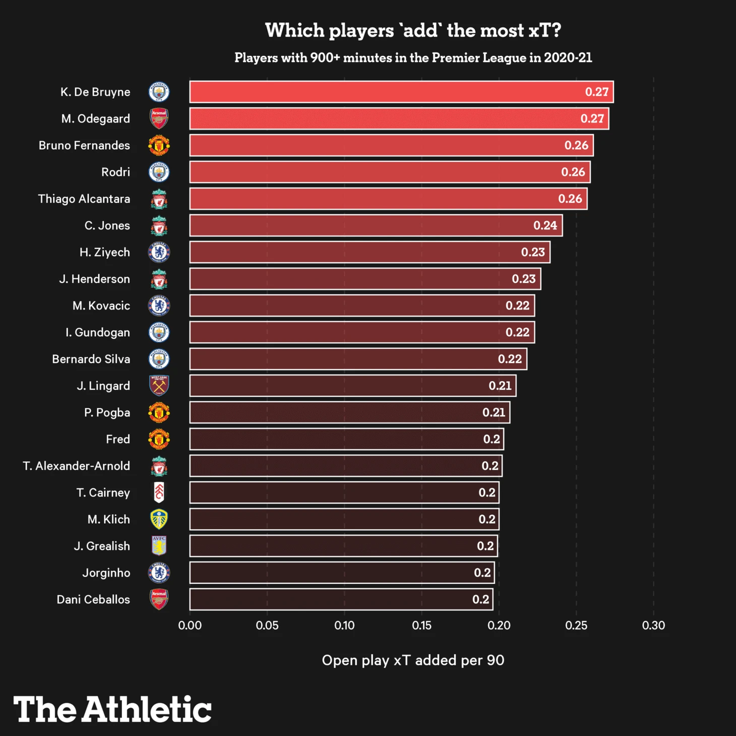 Предголевые передачи - не голевые, которые идут в статистику, но отразятся, например, в метрике xT. По этому показателю Мартин - ровня Кевину де Брюйне (среди сыгравших более 900 минут).