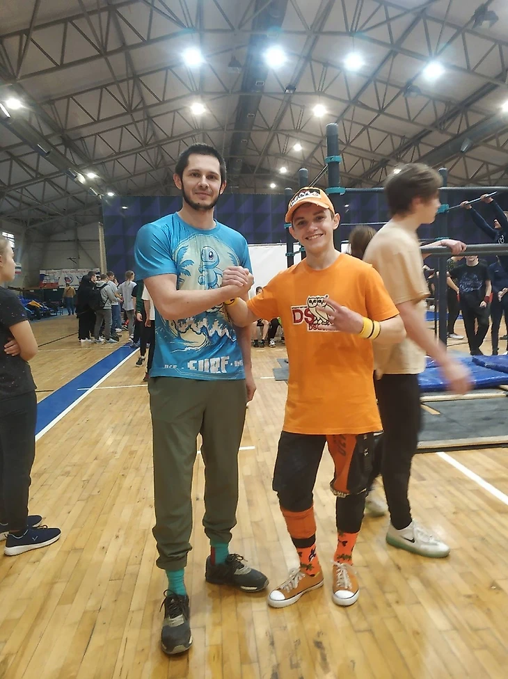 Очень важно то что приезжая на соревнования атлеты имеют возможность общаться с именитыми спортсменами. Получают от них поддержку и ценные советы . На фото Михаил Баратов и Даниил Ковальков. Битва Мастеров г.Тула 28.11.2021.г.