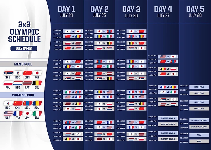 В первом розыгрыше олимпийских медалей 3х3 примут участие 8 мужских и 8 женских команд. Игры будут проходить с 24 по 28 июля. Россия выступит под нейтральным флагом.