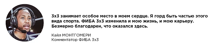 Если есть возможность, стоит хоть раз сходить на турнир 3х3 и проникнуться этой атмосферой. Если такой возможности нет, Ютуб в помощь. Все крупнейшие ивенты транслируются в социальных сетях, некоторые из них – даже в 4К, для любителей максимально четкой картинки. Еще одна причина посмотреть 3х3 онлайн – это комментатор ФИБА 3х3 Кайл Монтгомери a.k.a. The Voice. Кайл – американский комментатор, работающий в том числе и на матчах НБА и так идеально вписавшийся в 3х3.