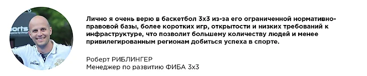 Эти слова стали слоганом всего пути развития и процесса включения баскетбола 3х3 в программу Олимпийских игр. «Баскетбол 3х3 был в фокусе внимания ФИБА за счет своего потенциала и активного роста, - рассказывает менеджер по развитию ФИБА 3х3 Роберт Риблингер. - Проведенное по заказу МОК исследование показало, что 3х3 является наиболее популярным городским командным видом спорта, после чего он был включен в программу Юношеских Олимпийских игр в Сингапуре в 2010 году. С тех пор стали проводиться Чемпионаты мира и в 2012 году запустился Мировой тур ФИБА 3х3. В 2013 было организовано показательное мероприятие в Бухаресте для Олимпийского комитета, после которого баскетбол 3х3 стал претендовать на включение в программу Олимпийских игр. К сожалению, мы стали жертвами непростой экономической ситуации на Играх в Рио в 2016 году, когда было принято решение не добавлять новые виды спорта. Однако, это не остановило процесс развития 3х3 в мире, появлялись новые турниры, заключались новые партнерские соглашения. Баскетбол 3х3 был представлен на первых Европейских играх в Баку. Как итог: 9 июля 2017 года 3х3 был официально включен в программу Олимпийских игр.»
