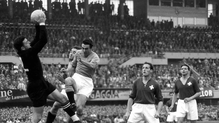 На мундиалях 1938-го и 1950-ого годов вопиющих ситуаций было по минимуму, поэтому кубок мира в Швейцарии сполна восполнил эти потери. Начнём мы с судейского скандала в поединке 4-ой группы между Швейцарией и Италией.