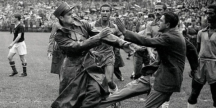 3-ий четвертьфинальный поединок, в котором встречалась Венгрия с Бразилией, обернулся самой грандиозной и грубой дракой в истории чемпионатов мира. В игре под символическим названием «Битва в Берне» было назначено 42 штрафных удара, 2 пенальти, а три игрока были удалены. Но настоящий трэш прогремел после финального свистка. Спровоцировал соперников и товарищей бразилец Мауро Мауриньо, который подошел к нападающему венгров Шандору Кочишу и ударил того в лицо. Начавшаяся после этого драка между футболистами продолжилась в подтрибунном помещении. Ференц Пушкаш заехал сифоном в голову Жуану Пиньейре и загнал бразильца в раздевалку. Получил удар сифоном по голове и главный тренер сборной Венгрии Густав Шебеш. Ему на раны пришлось наложить четыре шва.