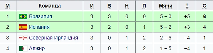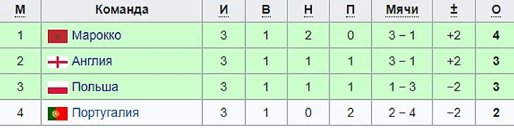 Что касается группы D, она же 4-ая, то тут всё банально и просто (проход Испании и Бразилии), а вот результаты 2-х последних бригад получились невероятными. Триумф датчан в группе с ФРГ и Уругваем – это ещё куда не шло, но вот перфоманс марокканцев, которые не позволили забить полякам, и англичанам, а также хлопнули в последнем решающем туре португальцев – это просто нечто. Марокко, кстати, стала 1-ой страной из Африки, сумевшей преодолеть групповой этап.